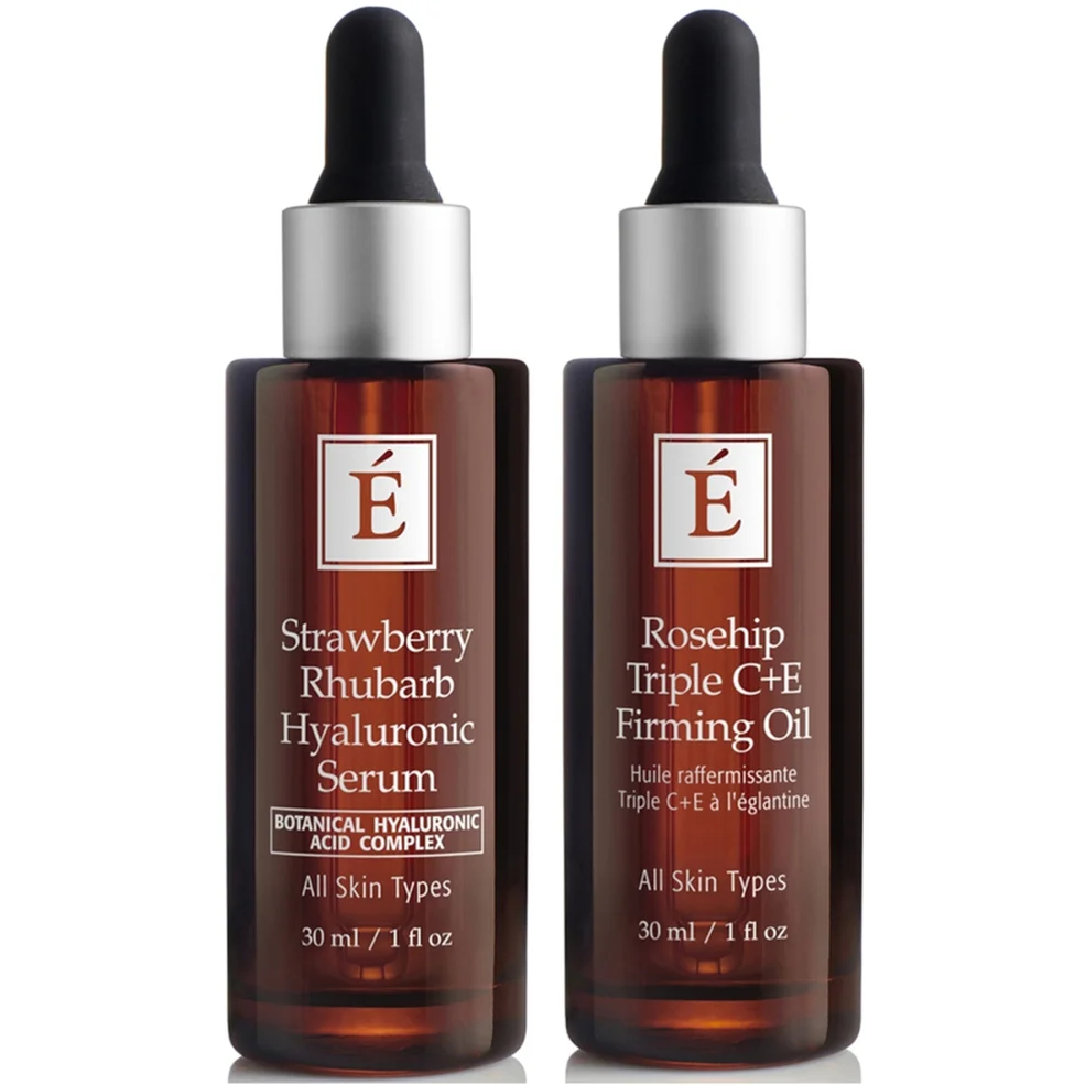 Eminence Organic Skin Care Strawberry Rhubarb Hyaluronic Serum: Discover a radiant, youthful-looking complexion with the potent Strawberry Rhubarb Hyaluronic Serum. Our unique Botanical Hyaluronic Acid Complex combines with cica, succulent strawberry and rhubarb to deeply hydrate for visibly smoother, softer skin. Suitable for all skin types, especially dry or dehydrated.
