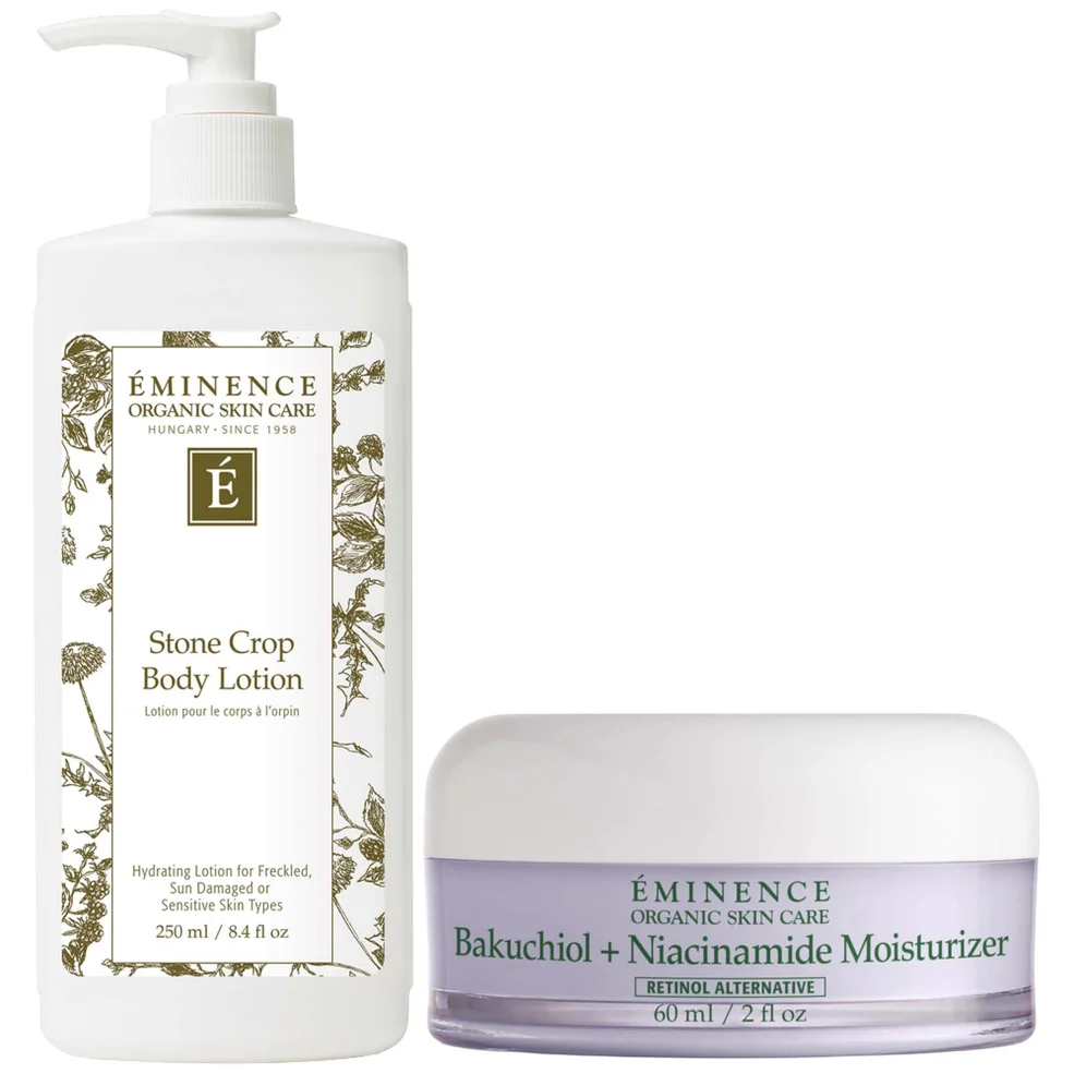 Eminence Organics Stone Crop Body Lotion: This body lotion contains naturally healing stone crop, which reduces the appearance of unevenness to leave the skin looking years younger. Restore skin’s natural hydration with this gel-cream moisturizer, formulated with the unique combination of retinol alternative bakuchiol and niacinamide. This pairing smooths wrinkles while visibly firming skin, minimizing large pores and uneven texture, with no visible irritation.