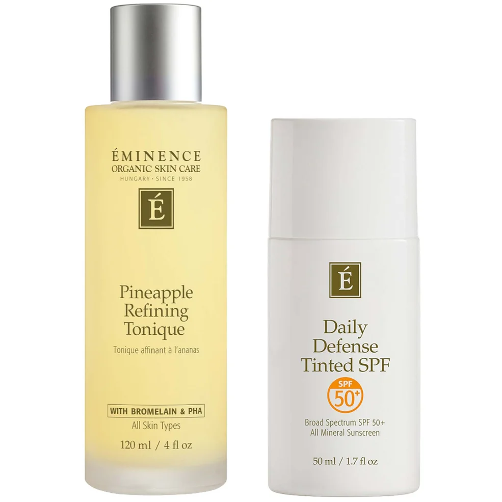 Eminence Organic Skin Care Daily Defense Tinted SPF 50ml: Achieve a natural finish with this lightweight, tinted SPF 50+ sunscreen. This all-mineral formula is non-comedogenic and enriched with antioxidants for hydration while offering broad-spectrum and blue light protection.