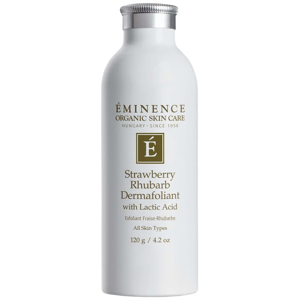 Reveal bright, refined skin with the award-winning Strawberry Rhubarb Dermafoliant by Eminence Organic Skin Care. Formulated with lactic acid, a blend of polishing flours and Botanical Hyaluronic Acid Complex, this vegan exfoliant gently removes impurities and excess oil from the skin to reveal a visibly smooth, radiant complexion. Suitable for all skin types. Soy- and gluten-free.