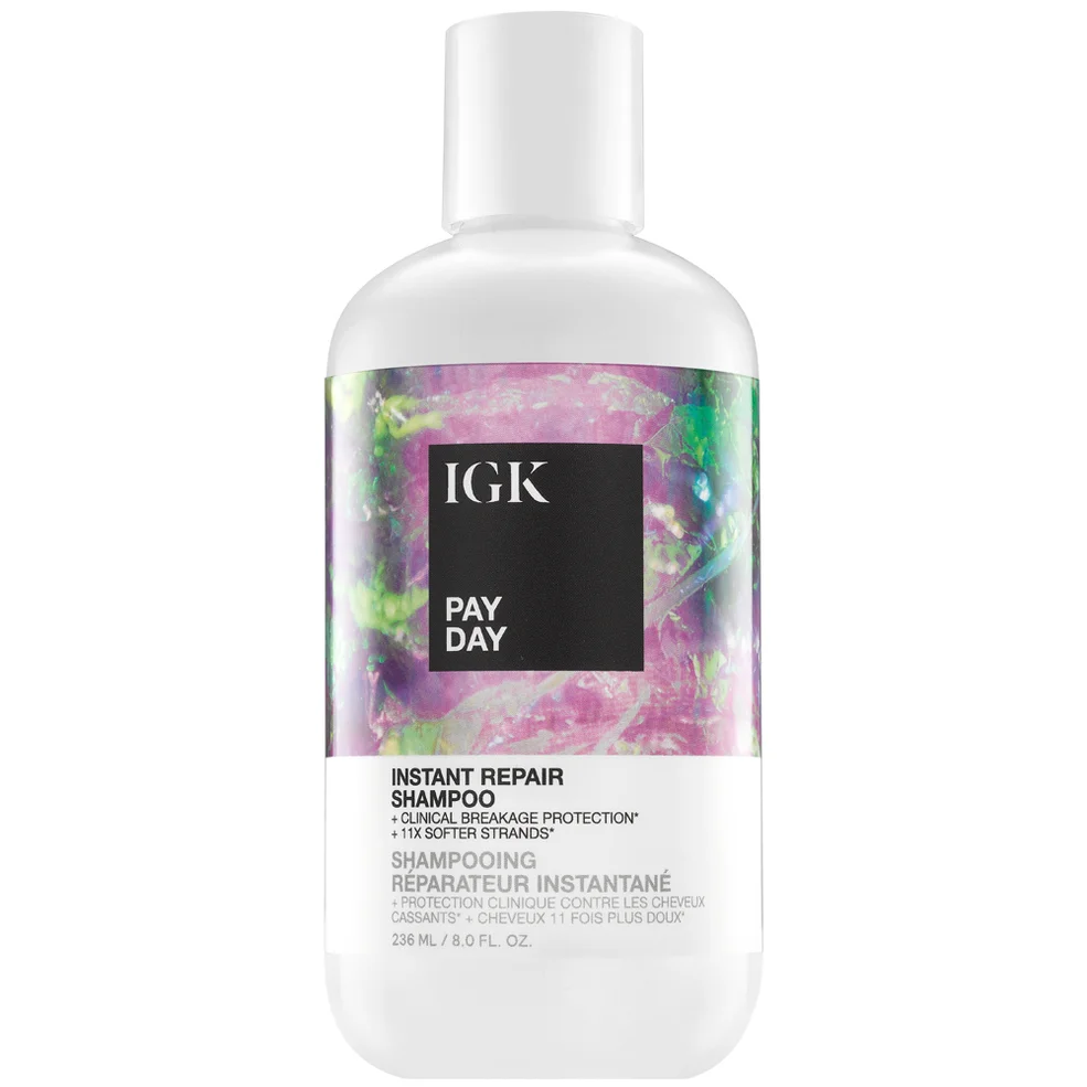 IGK’s Pay Day Instant Repair Shampoo is a clinically-proven repair shampoo that significantly reduces breakage.* Nourishing formula features biomimetic bond-building technology to gently cleanse, deeply moisturize, soften, and restore damaged hair.