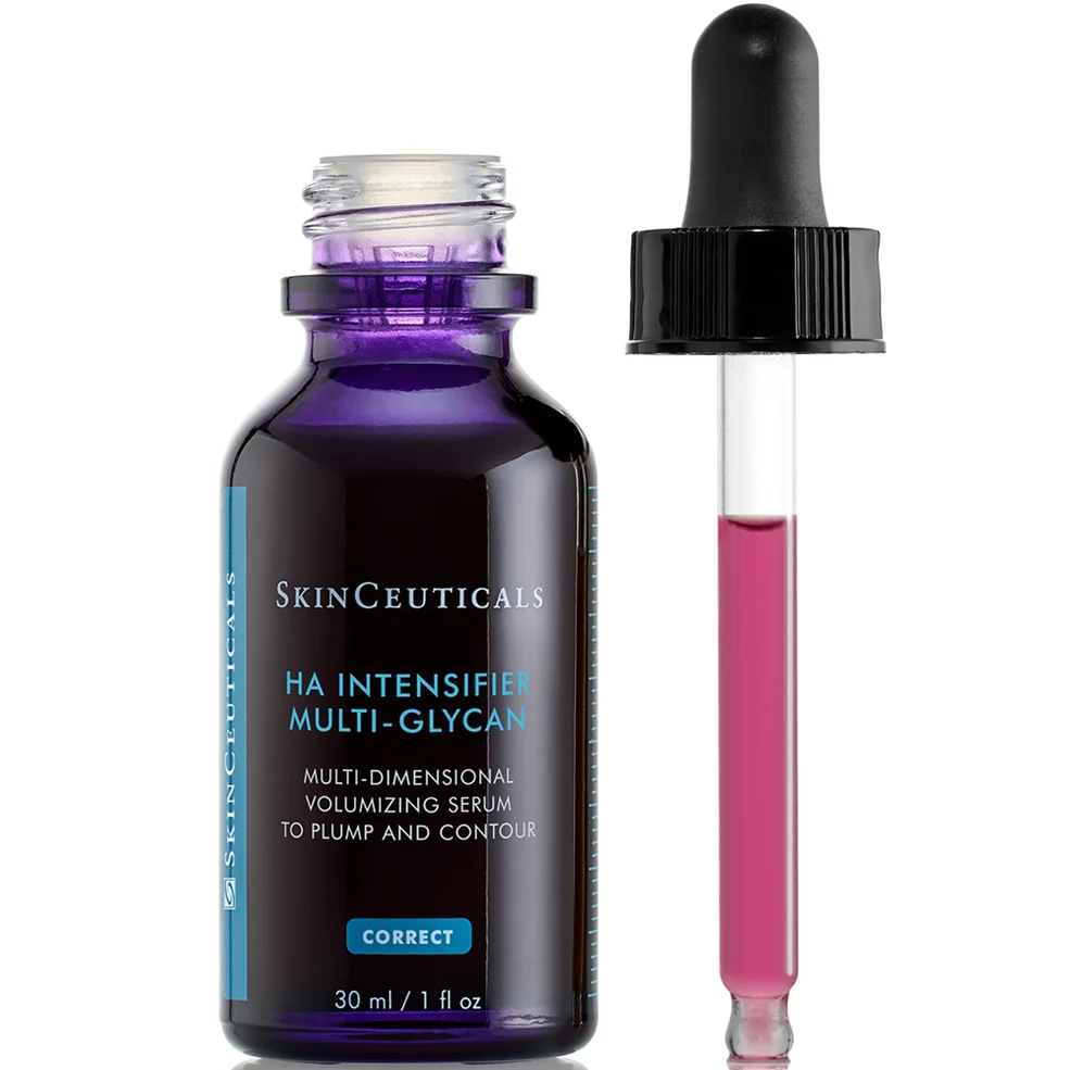 Built off the formulation of SkinCeuticals bestselling hyaluronic acid serum, HA Intensifier Multi-Glycan advanced formula provides next level results designed to complement the latest in dermal filler technology. HA Intensifier Multi-Glycan has the same efficacy as its predecessor, but with a new and better formula for multi-dimensional correction. This formula stimulates and enhances skin plumping glycans to hydrate plump and contour. Now with a fresher, lighter feel, 92% of consumers agree that this product feels lightweight while 95% agree that it does not pill on skin.