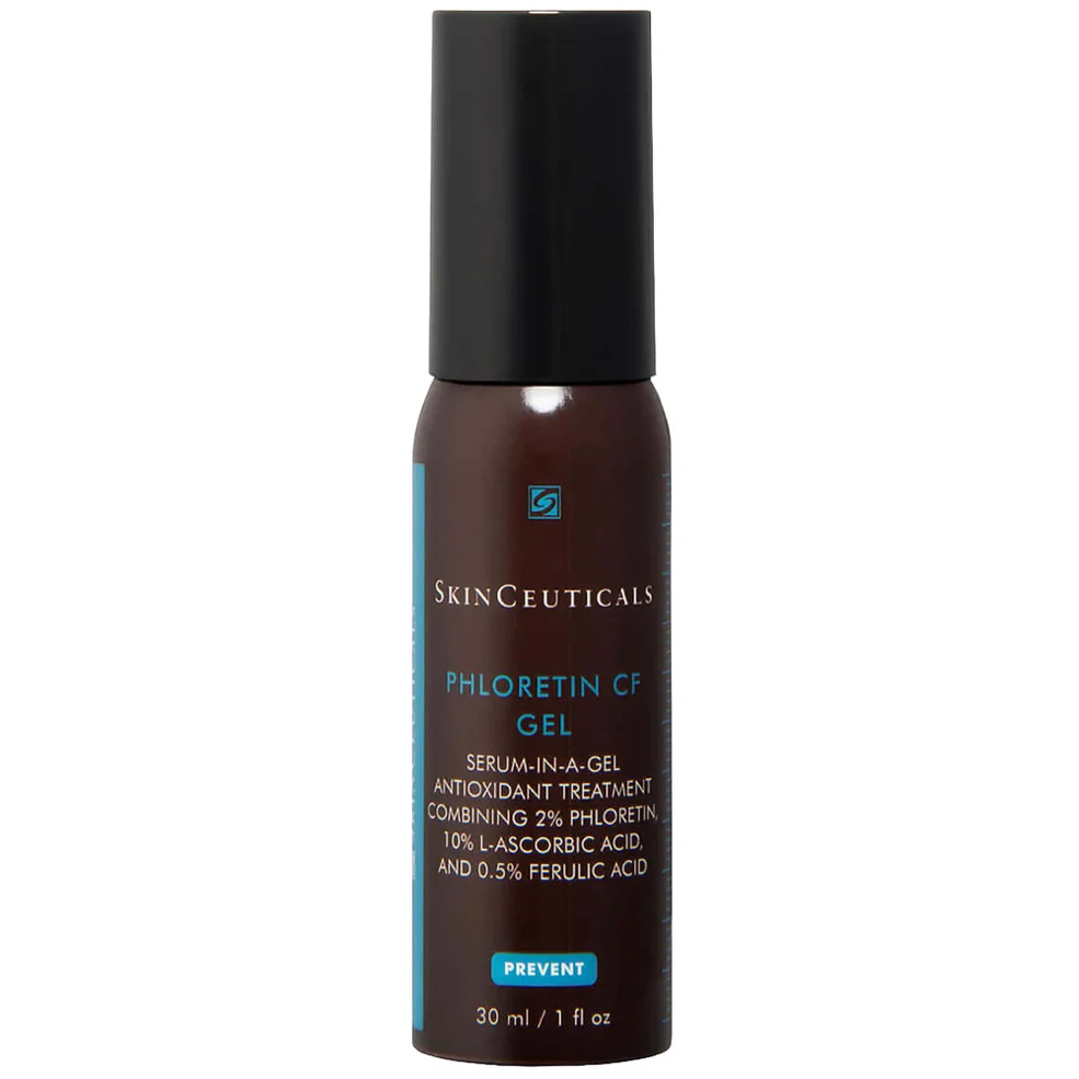 SkinCeuticals Phloretin CF Gel combines 2% phloretin with 10% pure vitamin C (L-ascorbic acid) and 0.5% ferulic acid for advanced protection from environmental aggressors. This daily vitamin C serum diminishes the appearance of discoloration, refines skin texture and improves skin tone. Apply in the morning for all day antioxidant protection and anti-aging benefits.