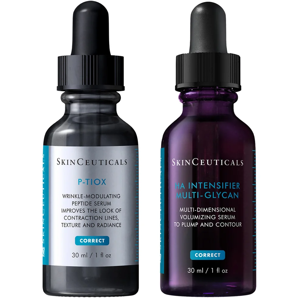 SkinCeuticals Plumping & Wrinkle Fighting Injectables Power Pair features two new innovations, P-TIOX and HA Intensifier Multi-Glycan. Harnessing the power of peptides, niacinamide and hyaluronic acid, this duo reduces wrinkles, plumps, contours and reveals glass skin radiance.
