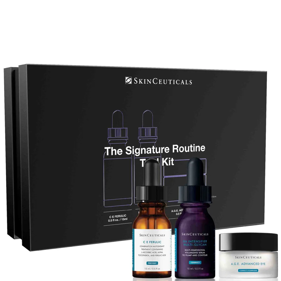 New to SkinCeuticals? The Signature Routine Trial Kit allows you to try out some of our best-selling anti-aging products, featuring #1 Dermatologist recommended C E Ferulic® (15ml trial size), H.A. Intensifier Multi-Glycan (15ml trial size) and A.G.E Advanced Eye (15ml).