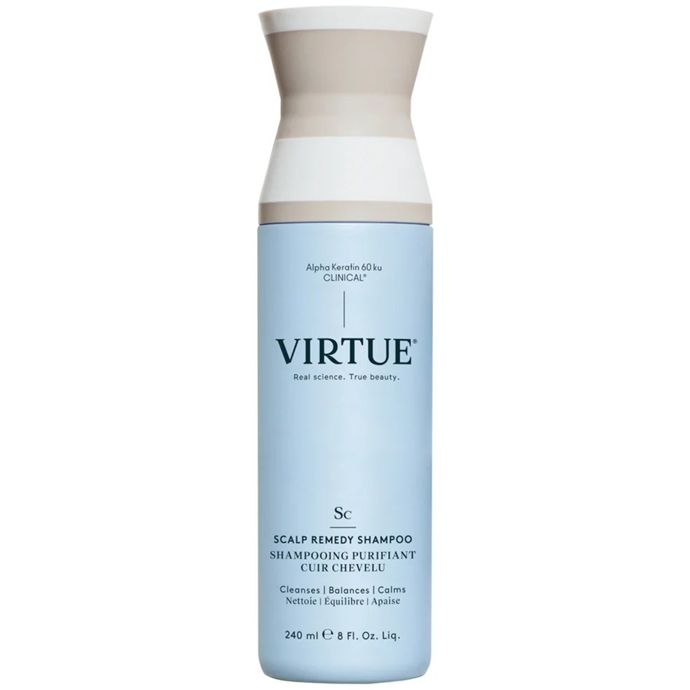 Virtue® Scalp Remedy Shampoo balances the microbiome and nourishes the scalp while gently cleansing, refreshing, and hydrating hair.